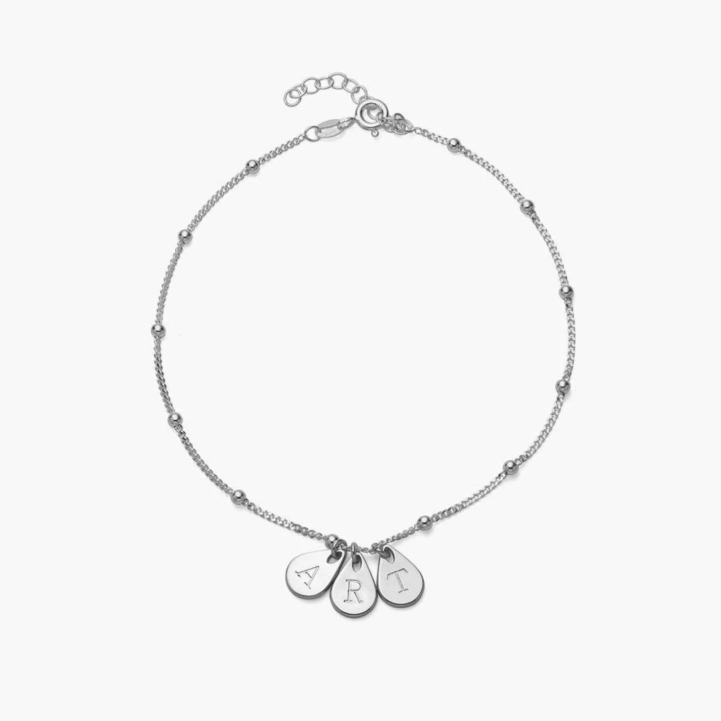 Meet our Maren Anklet featuring not one, but two places to customize! This anklet features up to two delicate drop pendants that hold one uppercase initial each.