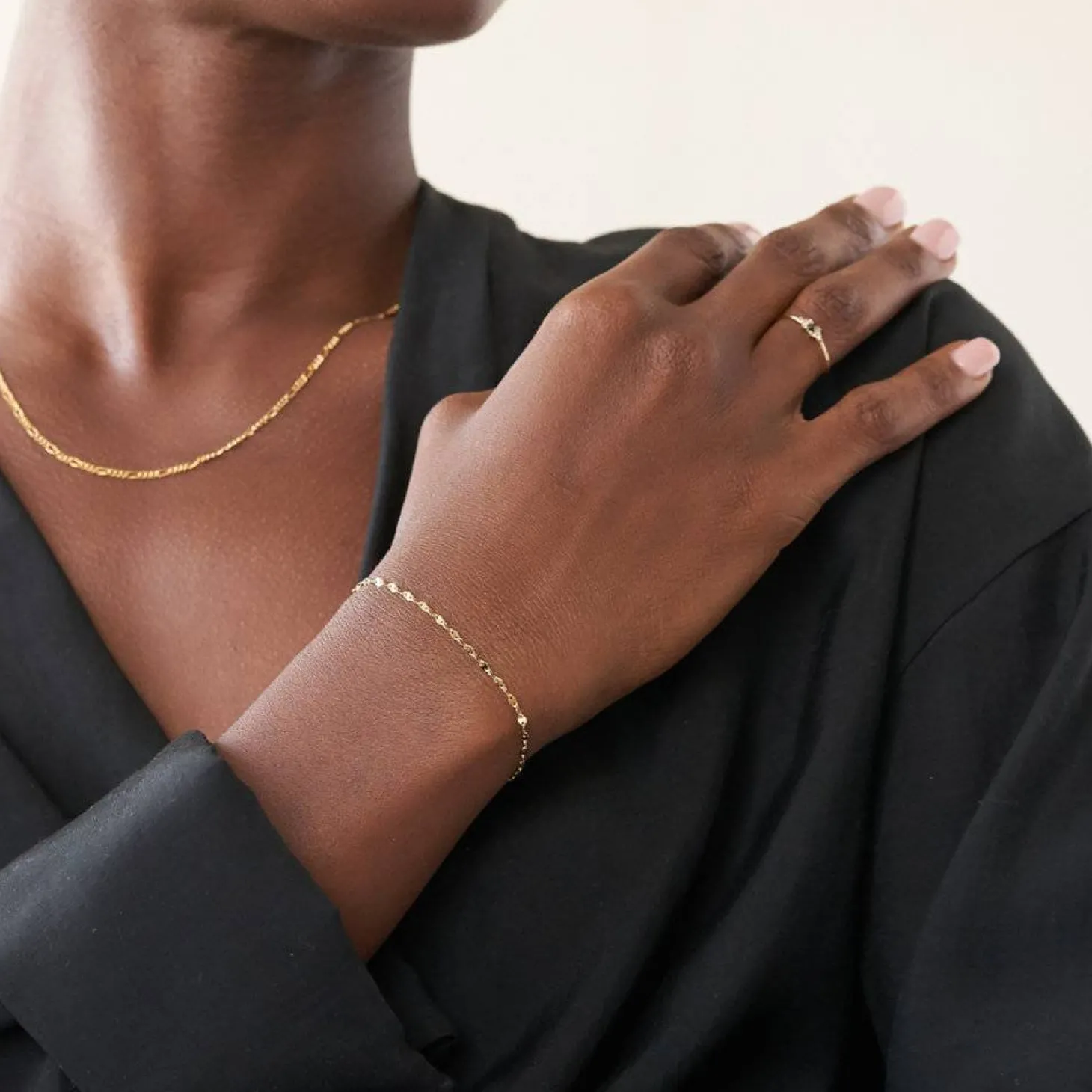 If you are looking to add a stylish flair to your outfit, look no further. The Margo Mirror Chain Bracelet and Anklet Set in Gold Plating is here! A unique mirror chain complements both the bracelet and anklet. This is very delicate dainty bracelet that can be stacked easily with other dainty gold bracelet.