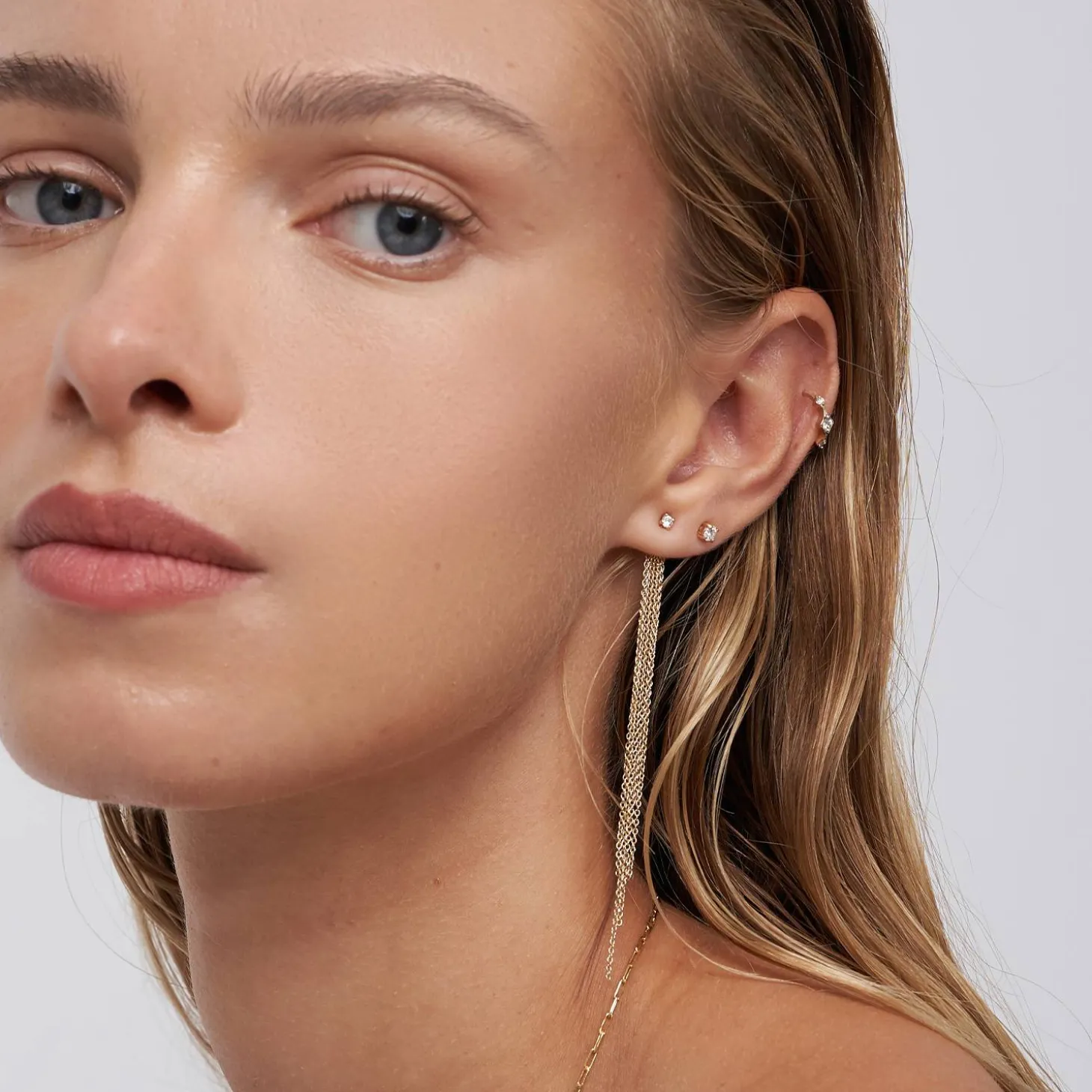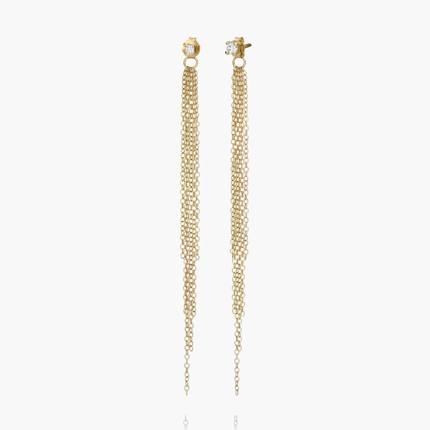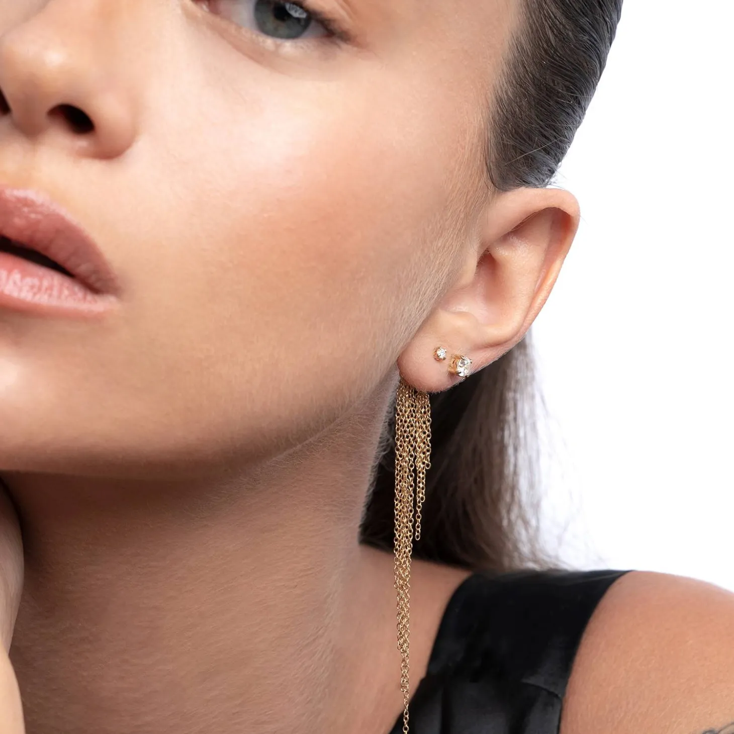 Experience the artistry of elegance with our Mimosa Long Tassel Single Stud, graced by a dainty 0.05 CT Diamond in Gold Vermeil. A harmonious blend of classic allure and contemporary chic, its elongated tassel design adds a captivating twist. Elevate your style effortlessly, as it beautifully pairs with Oak and Luna studs for a personalized ensemble. Redefine sophistication with a touch of radiance, securing your distinct charm with timeless opulence.