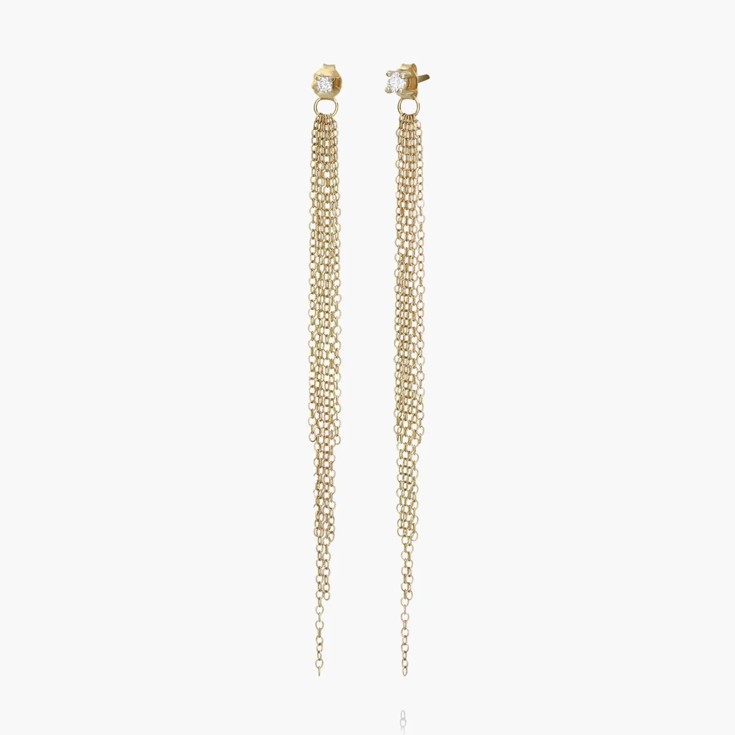Indulge in pure luxury with our Mimosa Long Tassel Stud, adorned with a delicate 0.05 CT Diamond in 14k Solid Gold. An epitome of timeless beauty and modern sophistication, its elongated tassel design adds an exquisite touch. Elevate your style effortlessly, creating unique combinations with Oak and Luna studs. Choose singular or paired perfection – each set showcases a tassel and matching stud, impeccably secured. Redefine elegance with enduring opulence and a radiant charm that captivates.