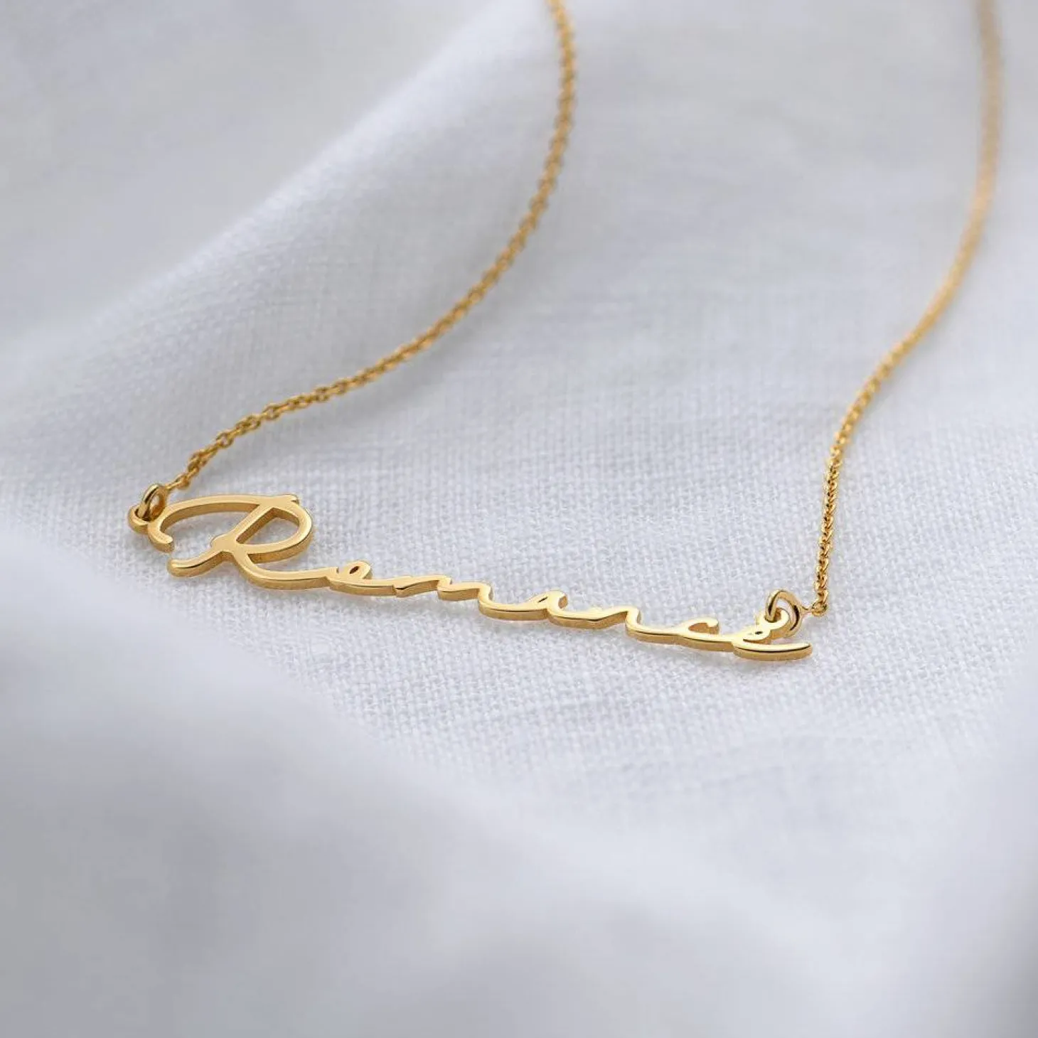 Ready. Set. Glow! The Mon Petit Name Necklace in Vermeil Gold Plating will only allow you to shine and is just the right finish for your signature style. Dazzle them with the intricate details of the eye-catching details of the cursive scripture.