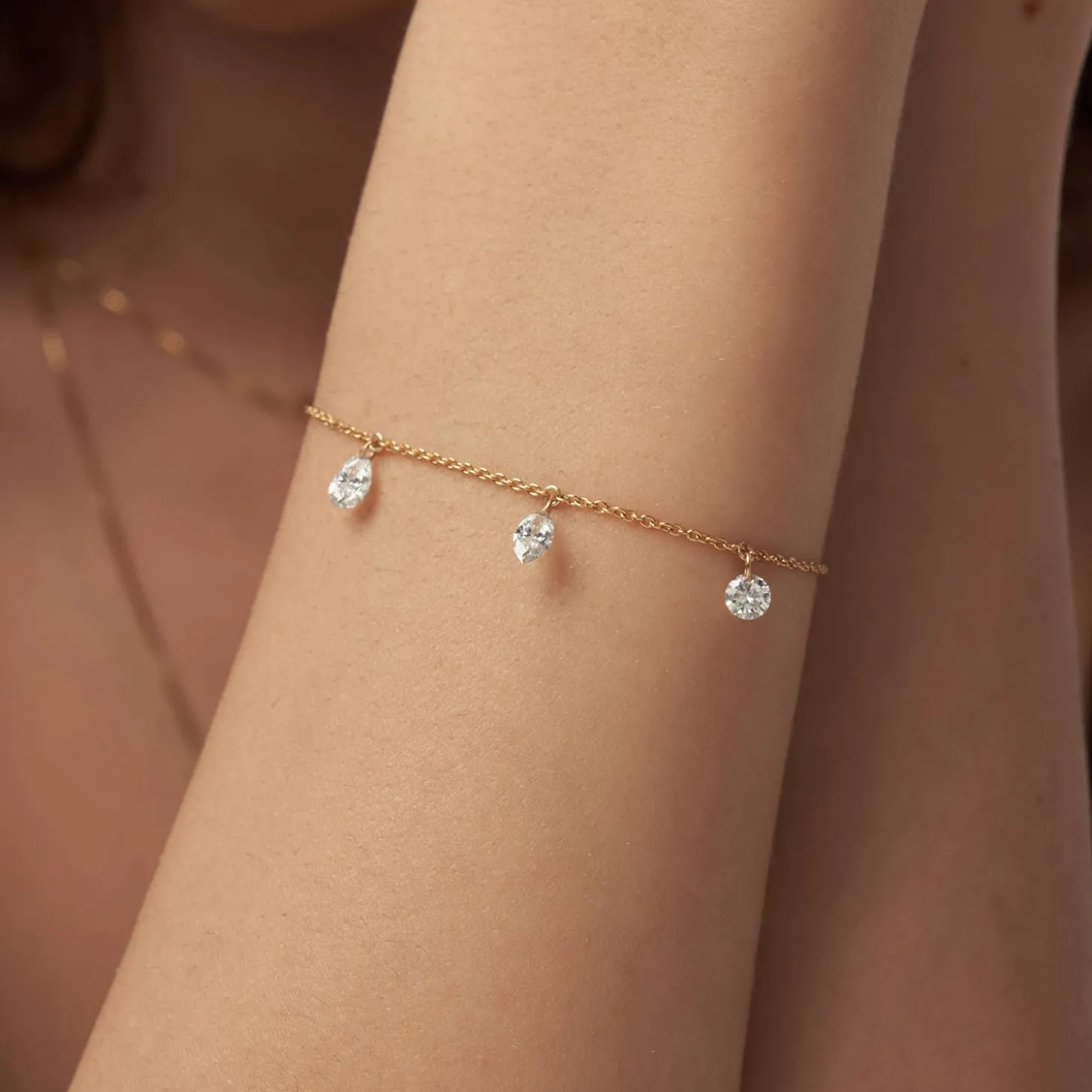 Unveil a world of refined luxury with the Personalized Capri Floating Diamond Bracelet in Gold Vermeil.