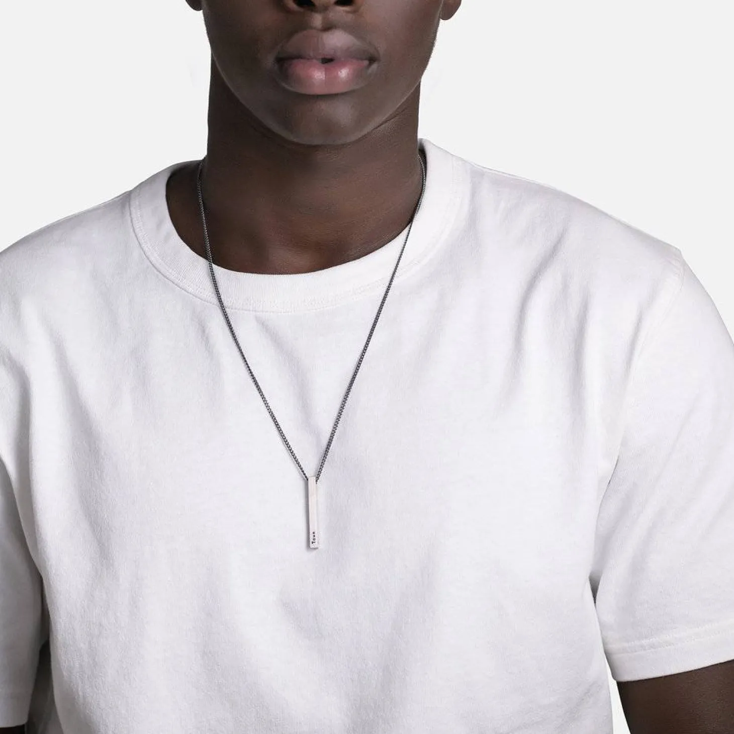 The Pillar Men’s Bar Necklace in Silver made from a panzer chain and is a classic piece that any man should own. Great for layering with other short and longer style necklaces or on its own, this elemental, dynamic piece completes an everyday look.