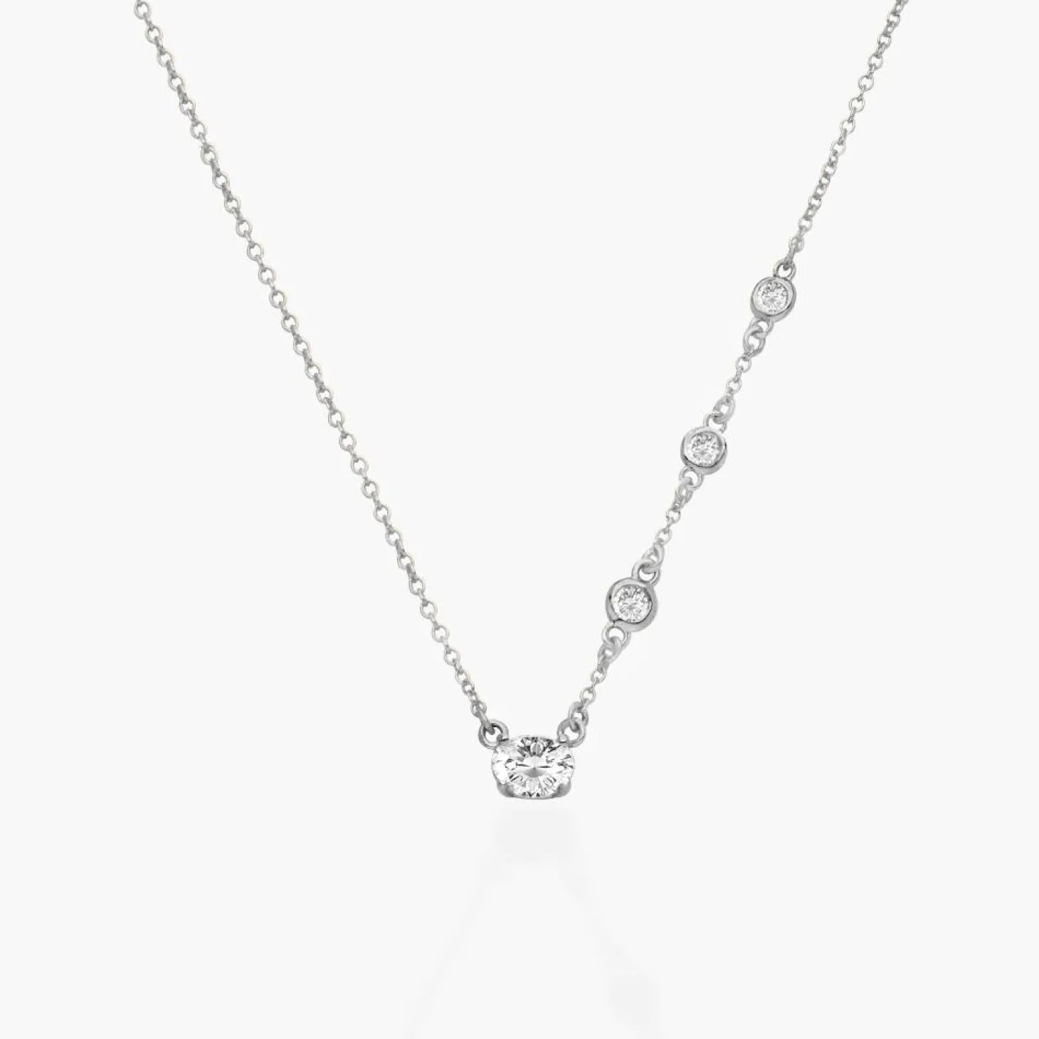 Crafted in silver, this exquisite necklace features a custom 0.3 ct diamond that you can personalize with your choice of shape – Round, Oval, or Emerald. Radiating unmatched beauty and prestige, this necklace allows you to customize your unique diamond. Adorn yourself with this precious treasure, a symbol of timeless sophistication.