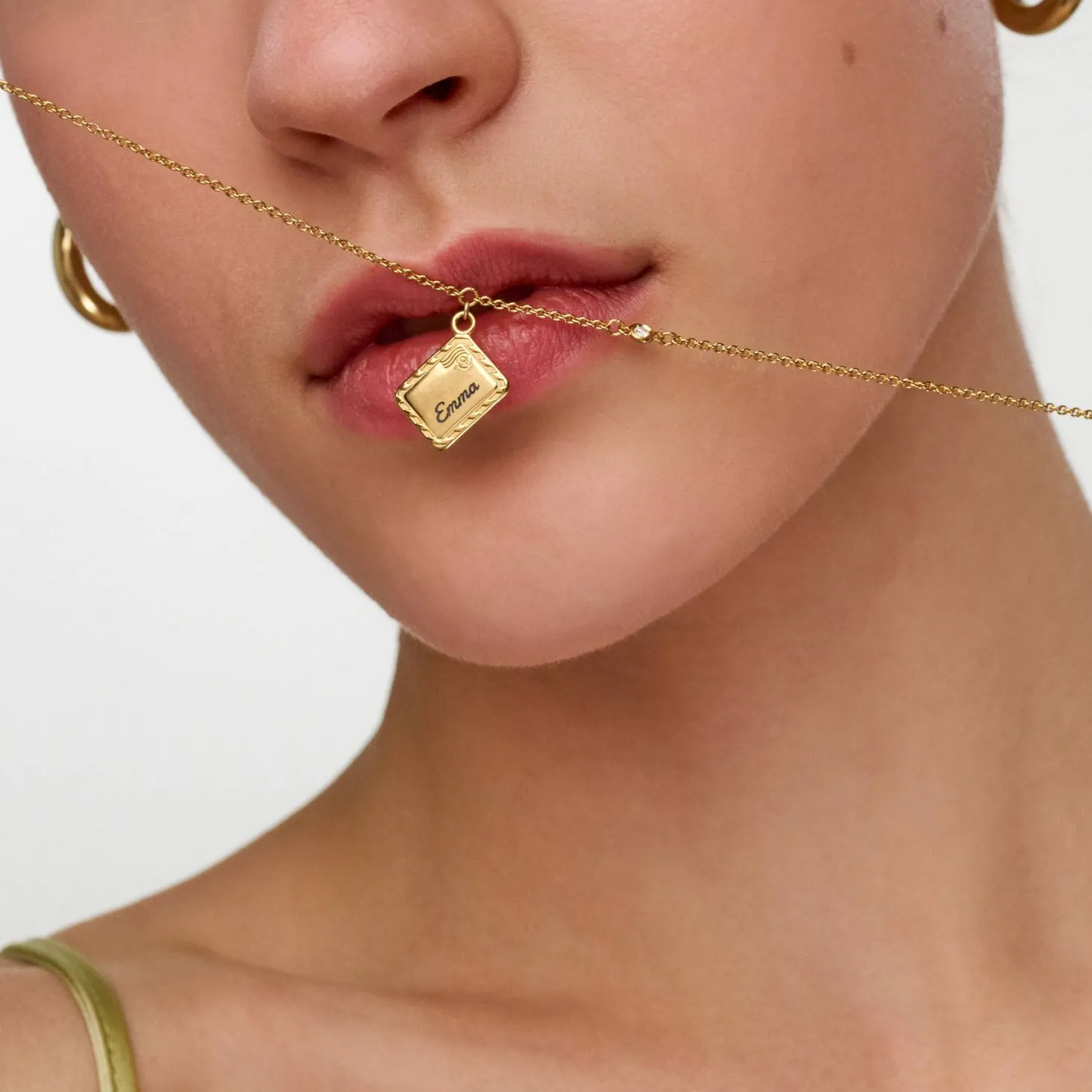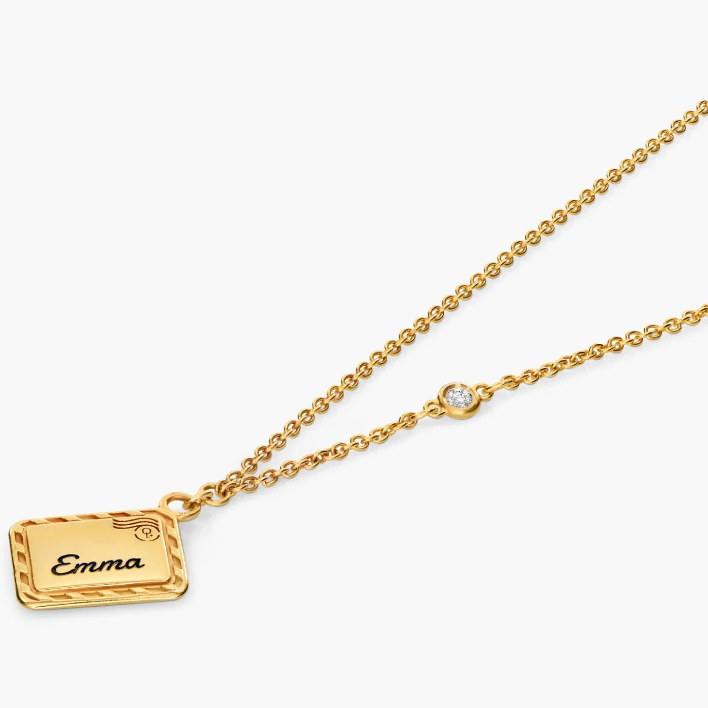 This gold vermeil pendant, sealed with a kiss and accented with a sparkling diamond, is the perfect symbol of love. Engrave up to 4 letters to make it uniquely personal. Elegant and meaningful, this necklace captures the essence of romance, offering a timeless keepsake for your most cherished moments.