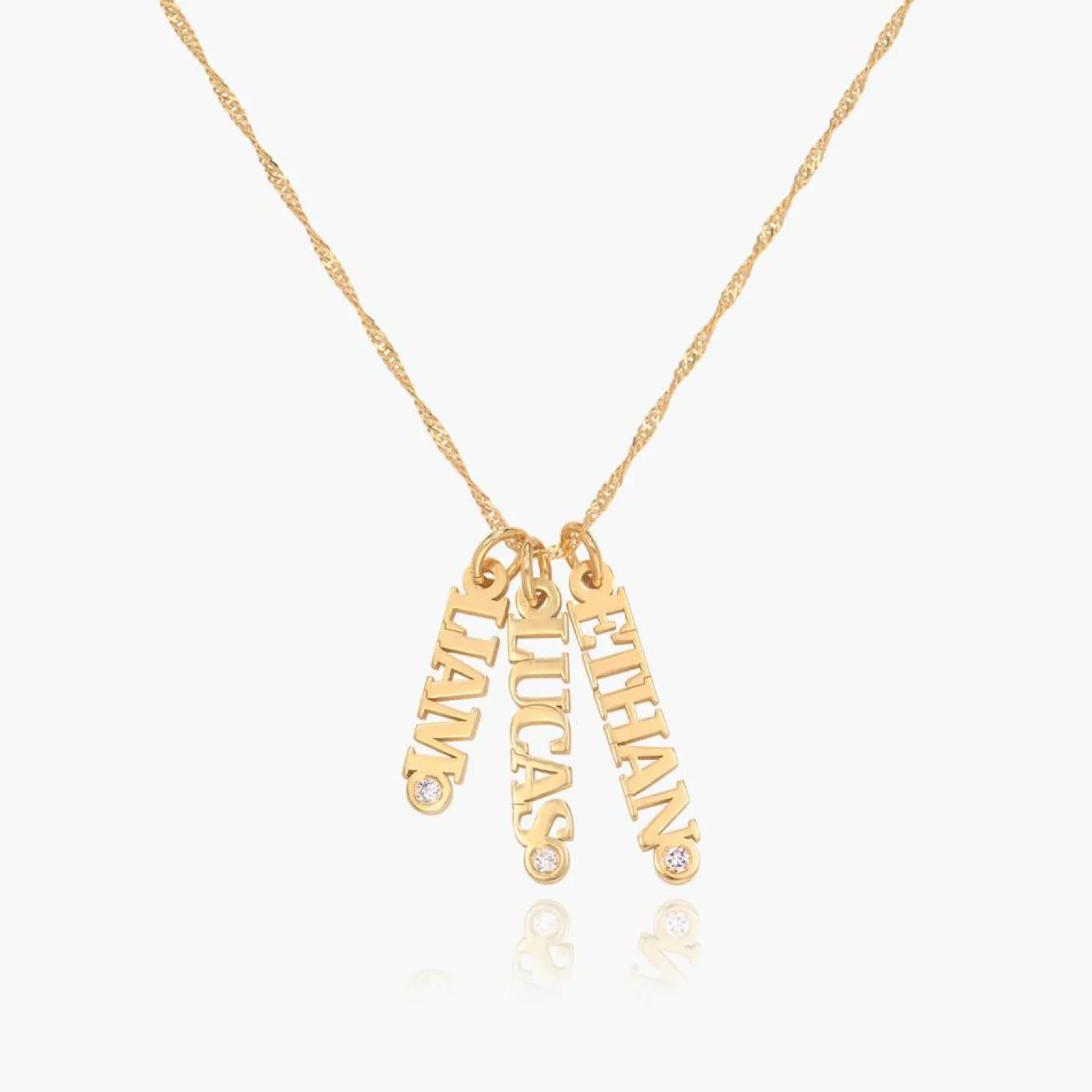 14K Solid Gold: 14K solid gold is a timeless metal. It keeps its look forever without oxidizing or changing its color, making it a must-have in your collection. Personalize your necklace with up to 3 charms, each with up to 9 letters of your choice, to create a unique and sentimental piece that speaks to your heart. The Singapore chain adds a beautiful texture, while the diamonds add a touch of elegance and sparkle, making this necklace a true masterpiece.