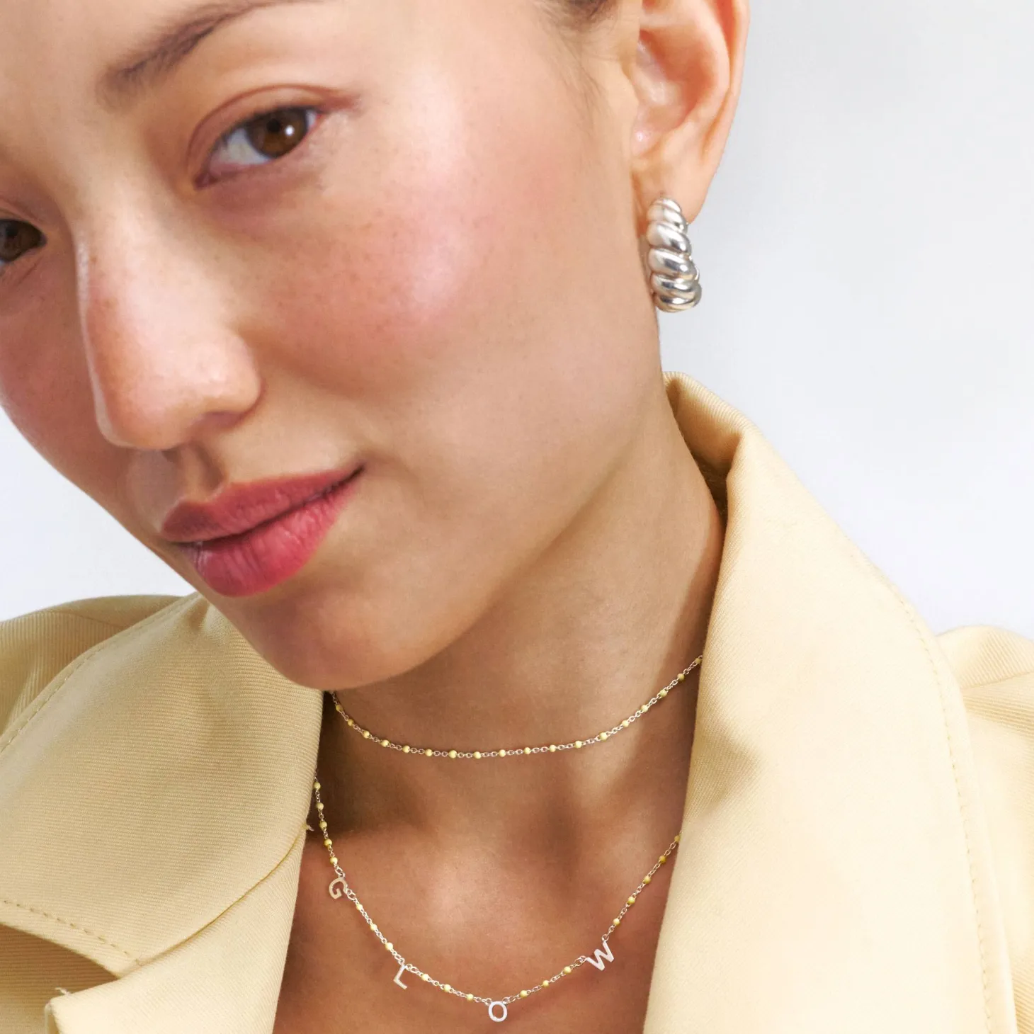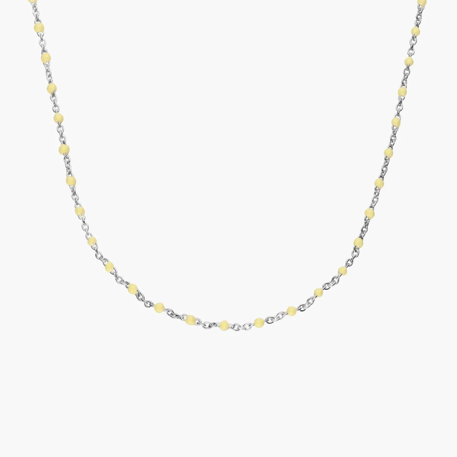 The Soltale Butter Enamel Chain in silver is a versatile, minimalist piece perfect for layering or wearing solo. The soft butter enamel adds a delicate pop of color, and the silver cable chain provides a sleek, timeless finish.