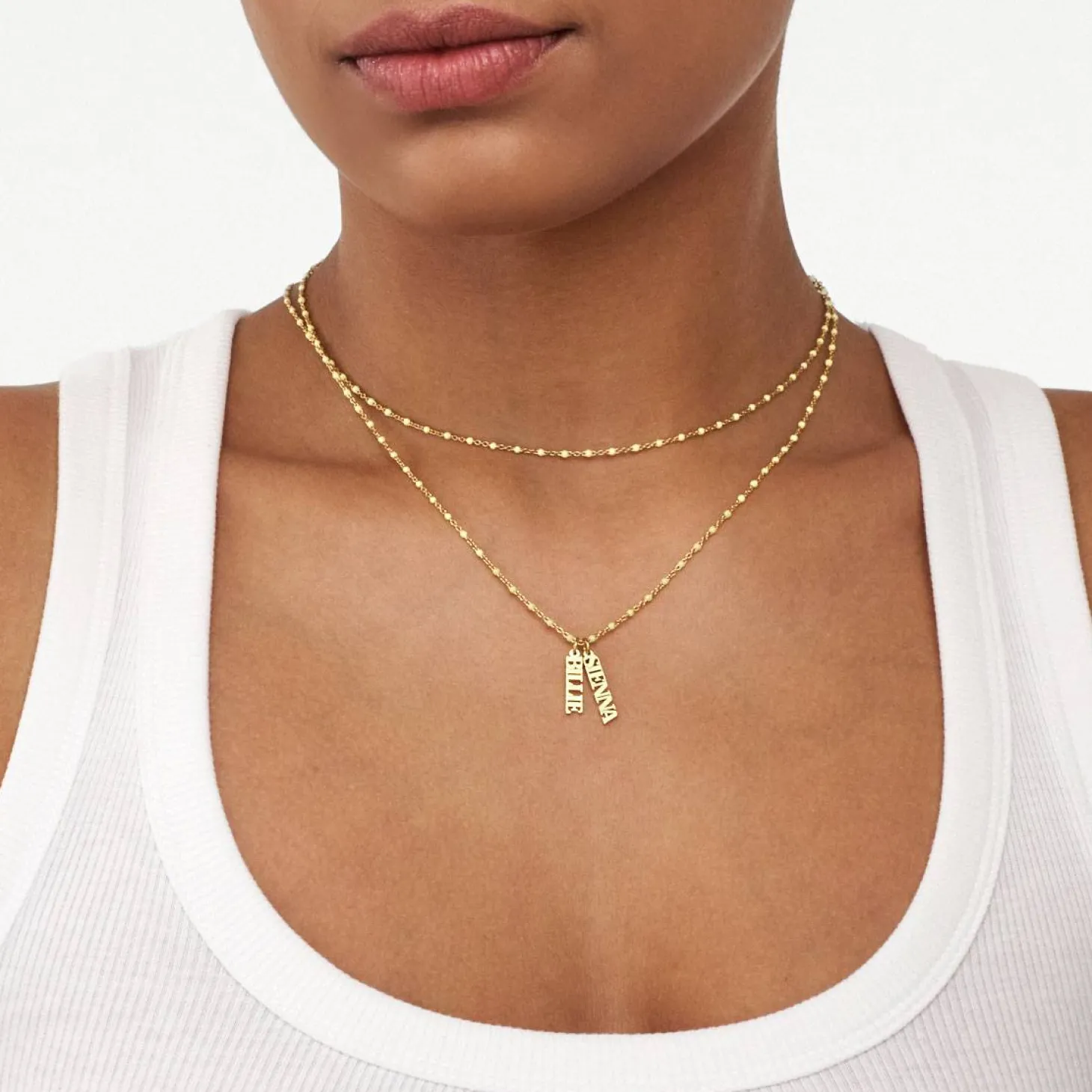 The Soltale Butter Singapore Chain Name Necklace in gold vermeil adds a luxurious warmth to your summer accessories. Personalize this necklace with up to 3 names, each highlighted by a soft butter enamel charm. The gold vermeil finish provides a rich, sophisticated glow, making this a versatile and stylish piece to wear all season long.