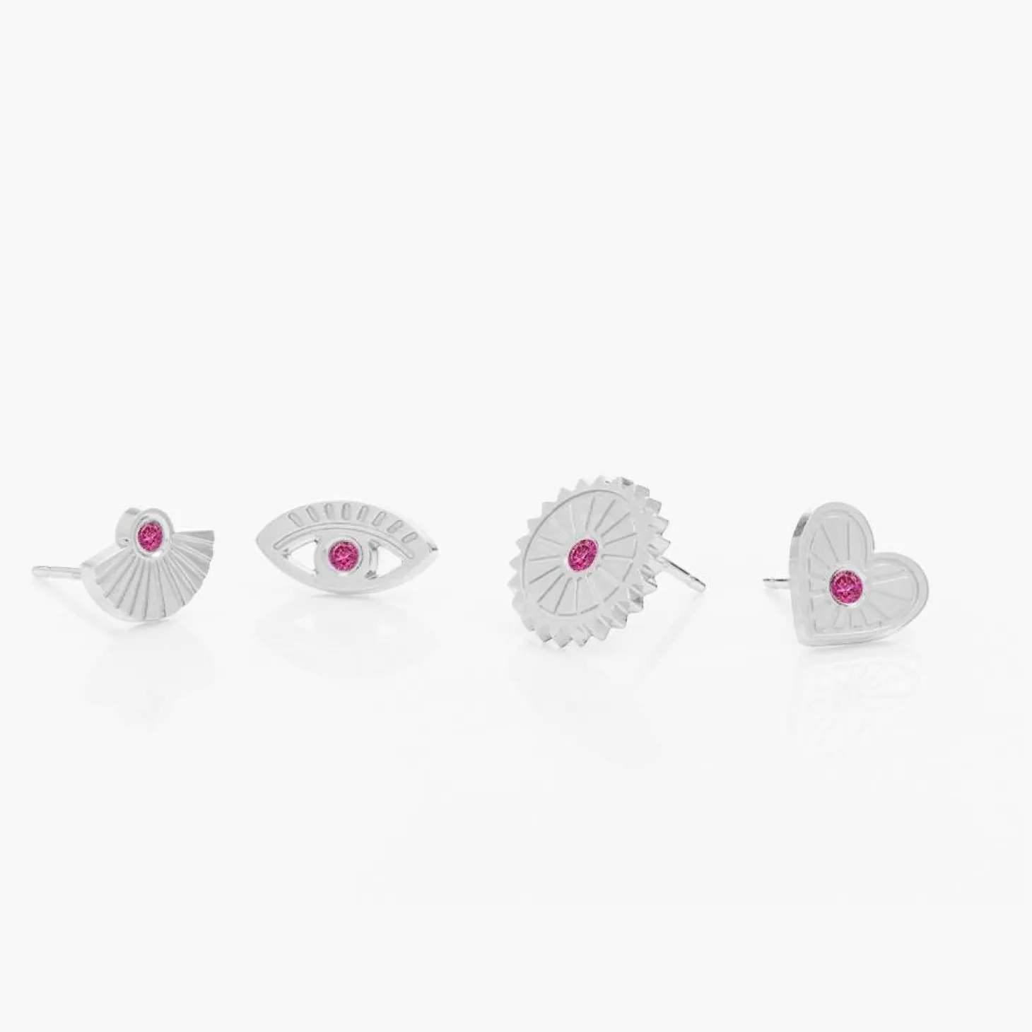 This set includes four different stud earrings, each featuring a unique design and your choice of red, green, or black cubic zirconia. The cubic zirconia stones are carefully selected for maximum sparkle and set in high-quality silver, making these earrings both beautiful and durable.