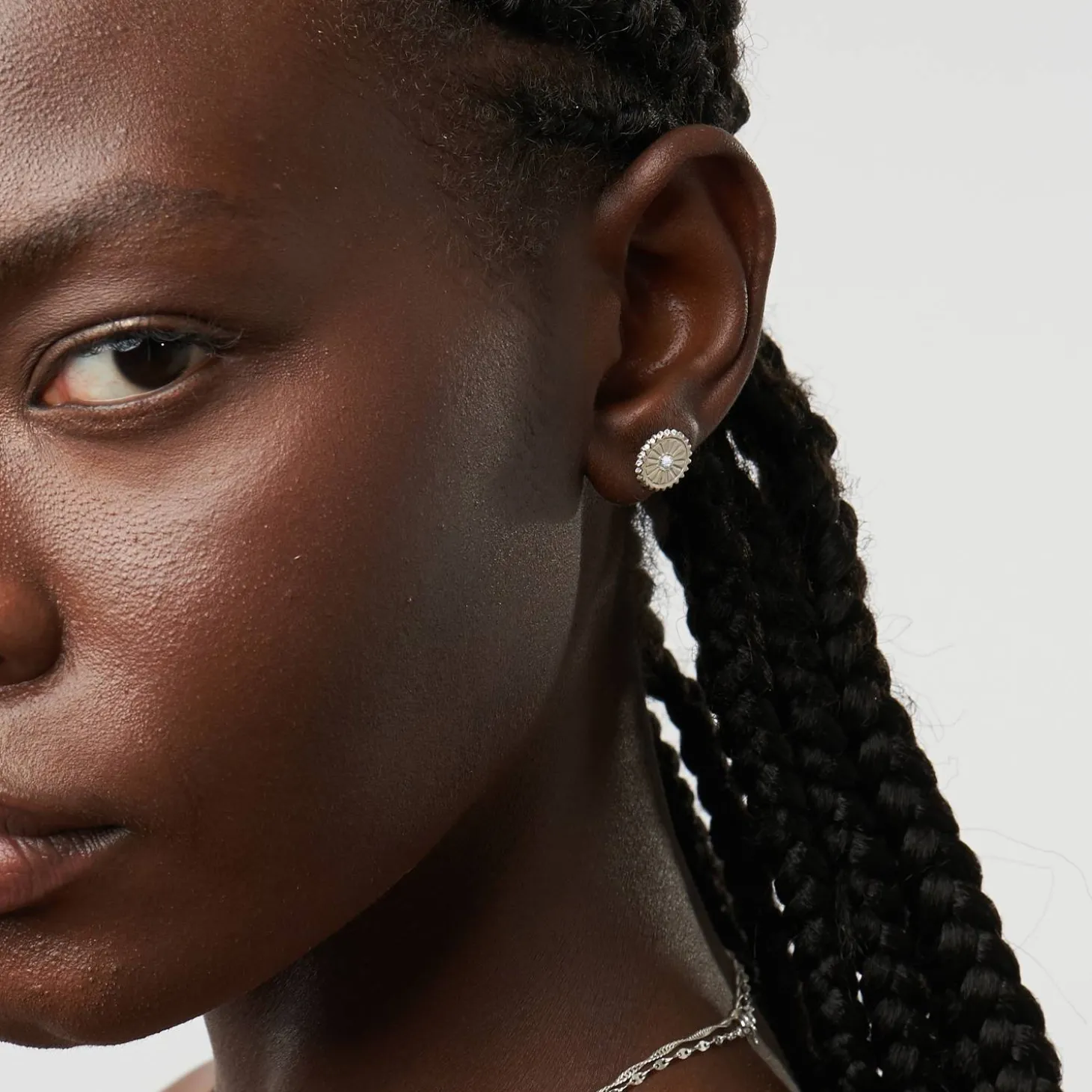 The Spiritual Stud Earrings set with Diamonds in Silver is an exquisite set of earrings that adds a touch of elegance and spirituality to any outfit.