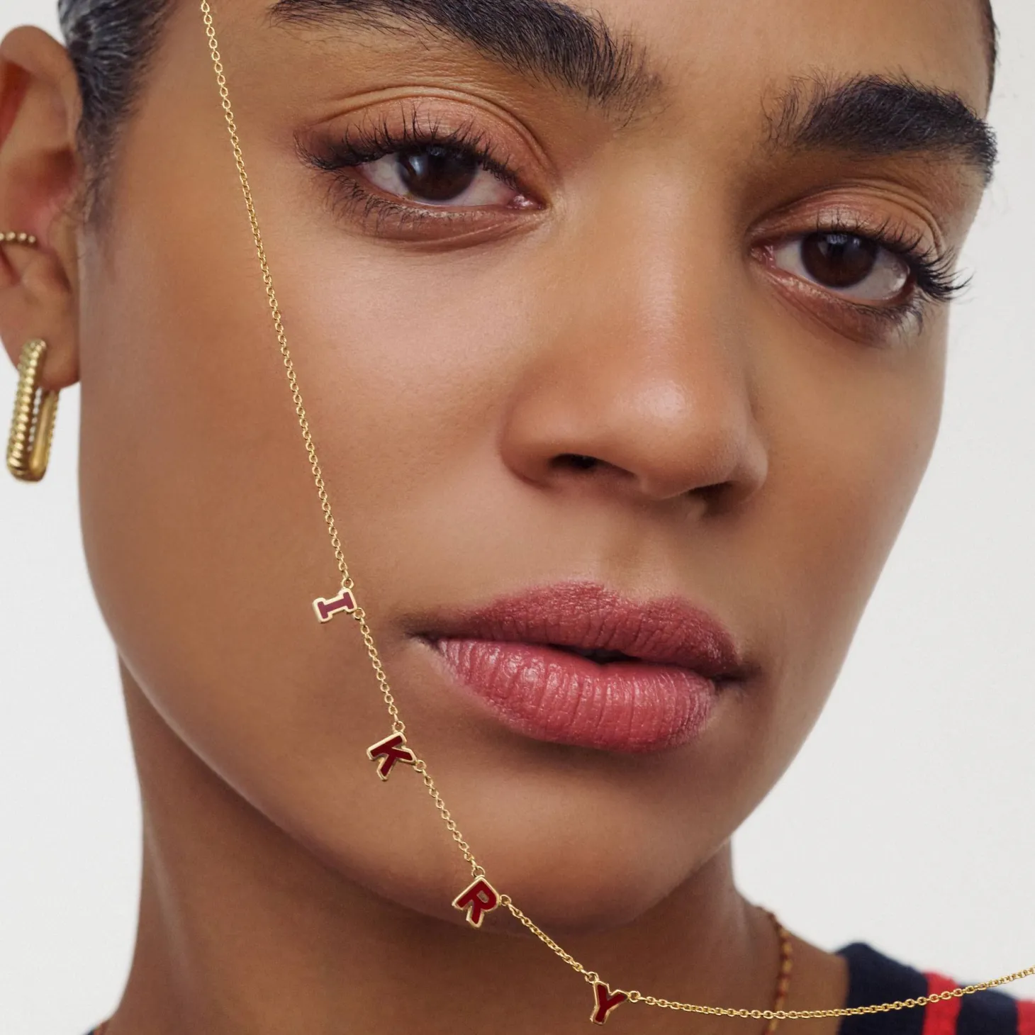 Elevate your look with the Sunrise Inez Initial Necklace in Gold Vermeil. Customize with 1-4 initials and select from Cream, Lavender, or Burgundy enamel colors. This luxurious necklace combines elegance with personal sentiment, making it a treasured addition to your jewelry collection.