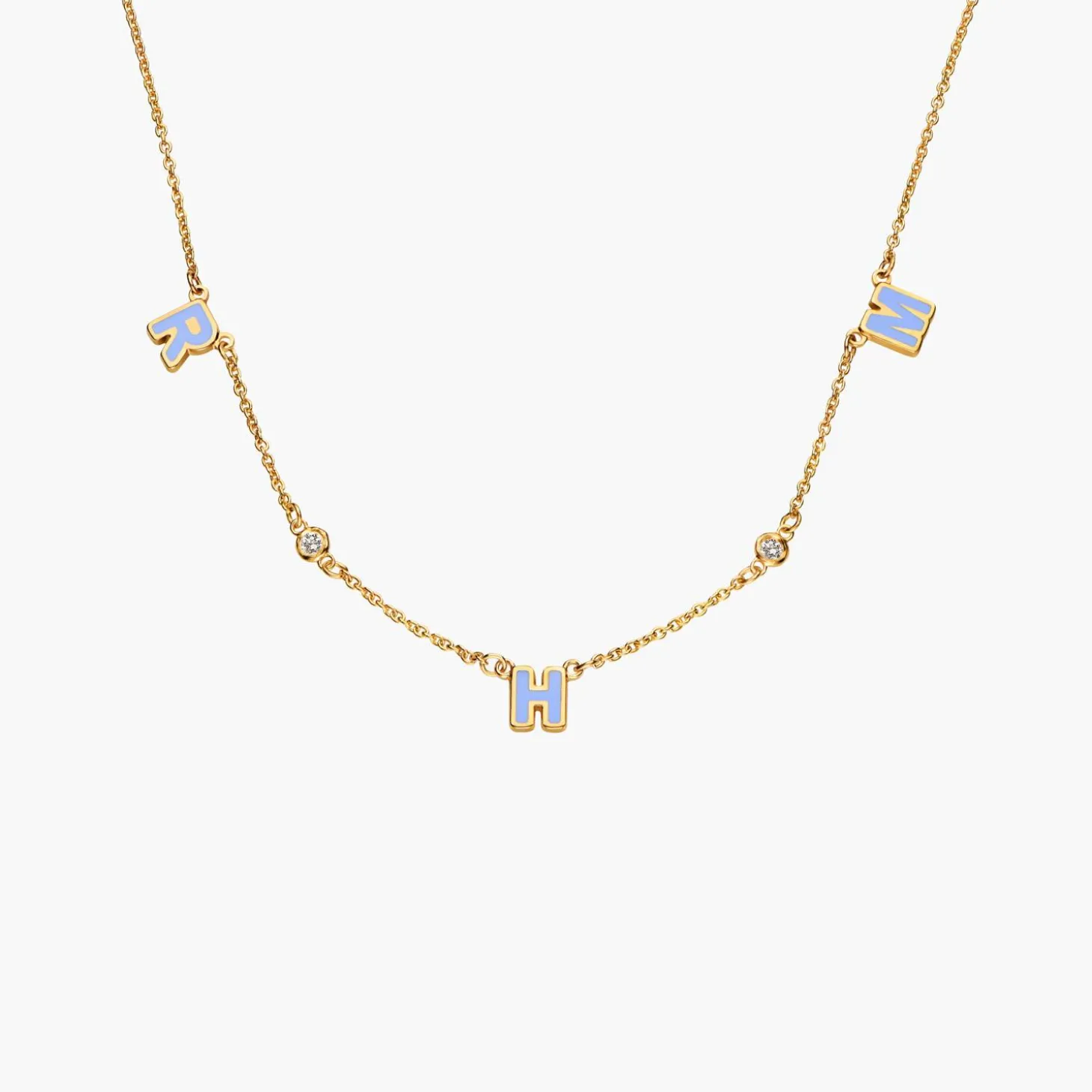 Elevate your style with the Sunrise Inez Initial Necklace in Gold Vermeil, featuring diamonds. Personalize with 1-4 initials and select from Cream, Lavender, or Burgundy enamel colors. This luxurious necklace blends elegance and personal meaning, making it a cherished accessory.