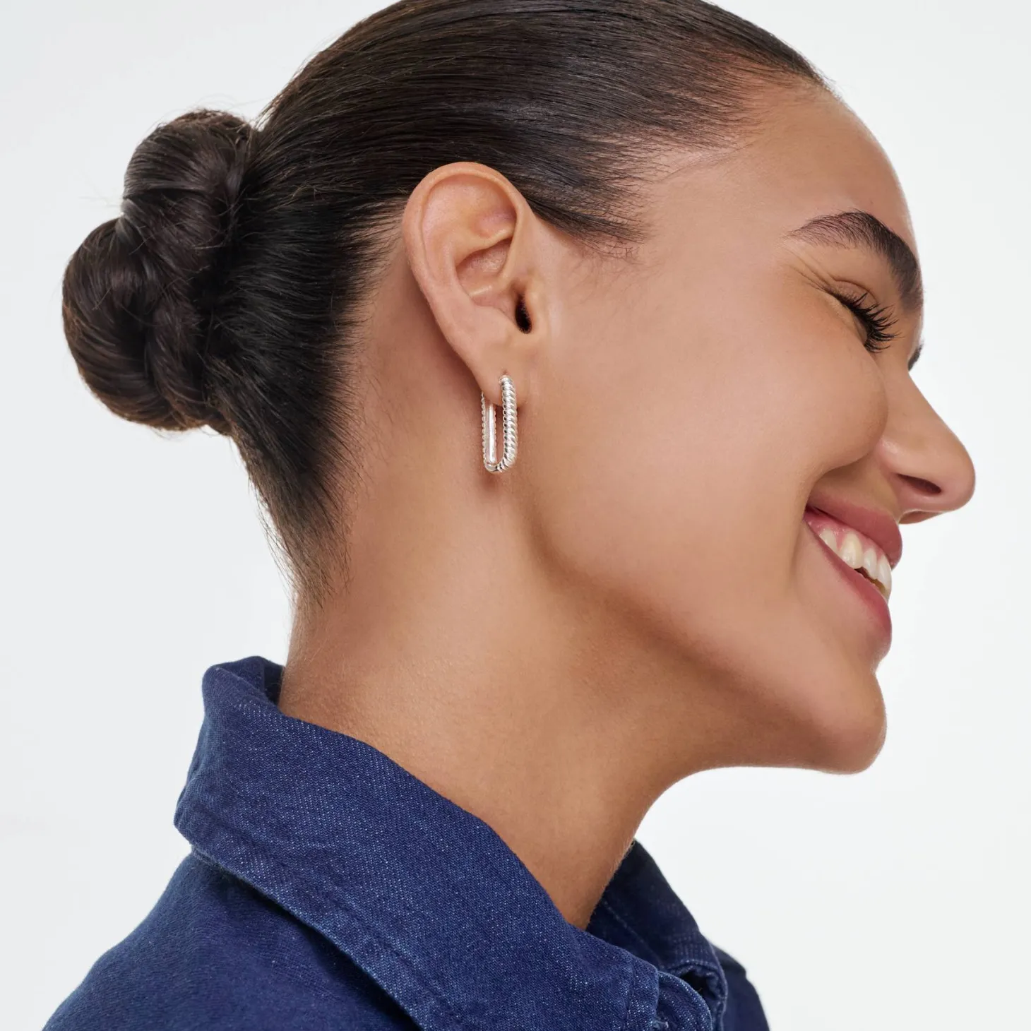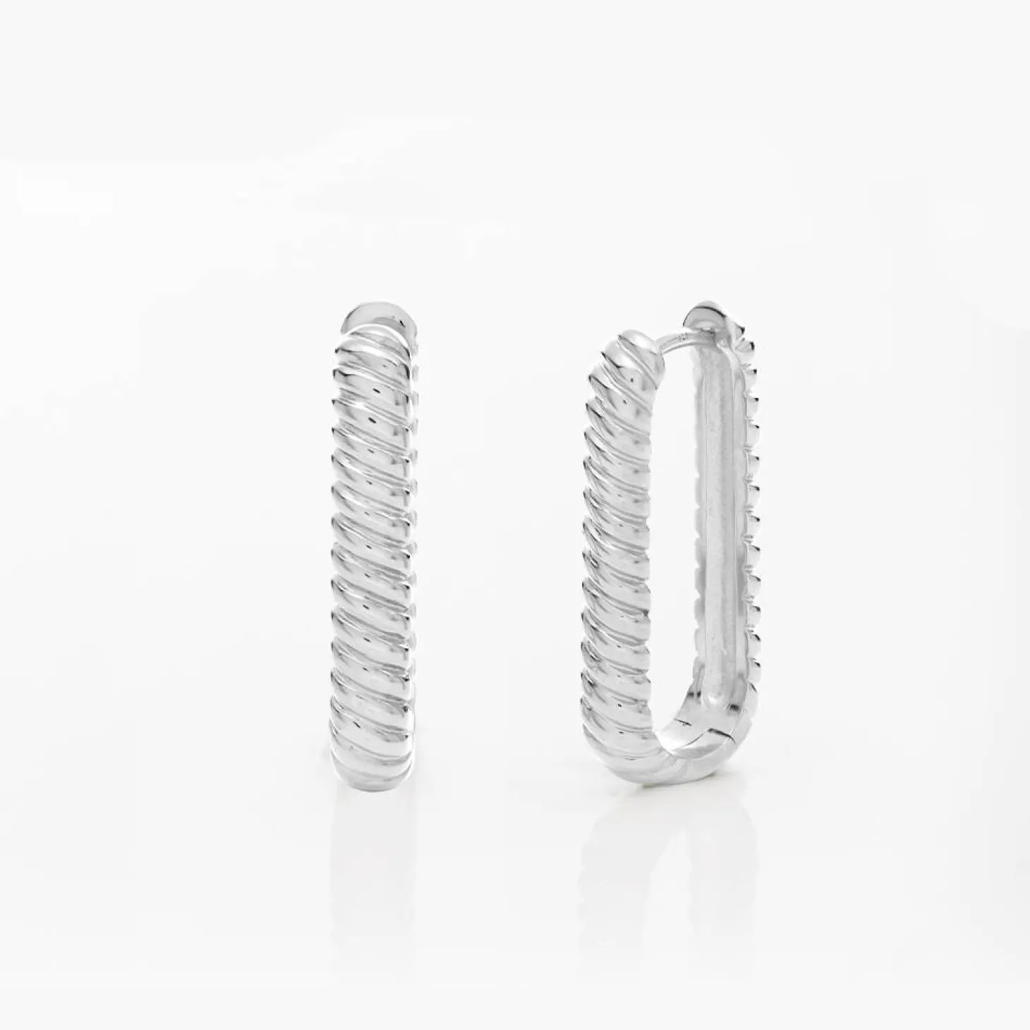 Elegantly modern, our Twisted Rectangle Hoop Earrings in silver effortlessly blend bold geometry with timeless charm. A captivating addition to any ensemble, these hoops redefine classic elegance.