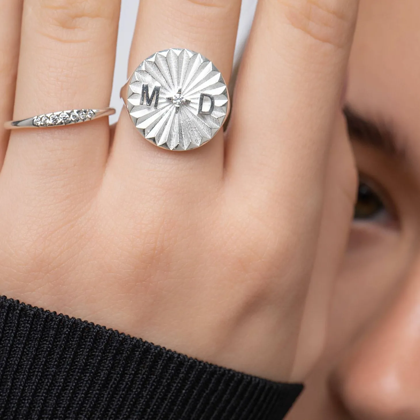 925 Sterling Silver: Timeless and durable, sterling silver is always a classic choice. As pure silver is too soft to last, 925 silver combines 92.5% pure silver and 7.5% copper. Made from high-quality materials, this ring features a beautiful medallion that can be customized with your choice of initials or symbols. Whether you choose one or two initials, this ring is sure to make a statement. Not only is it a stylish addition to any outfit, but it also makes a thoughtful gift for a loved one. The personalized aspect of the ring makes it a one-of-a-kind piece that is sure to be treasured for years to come.